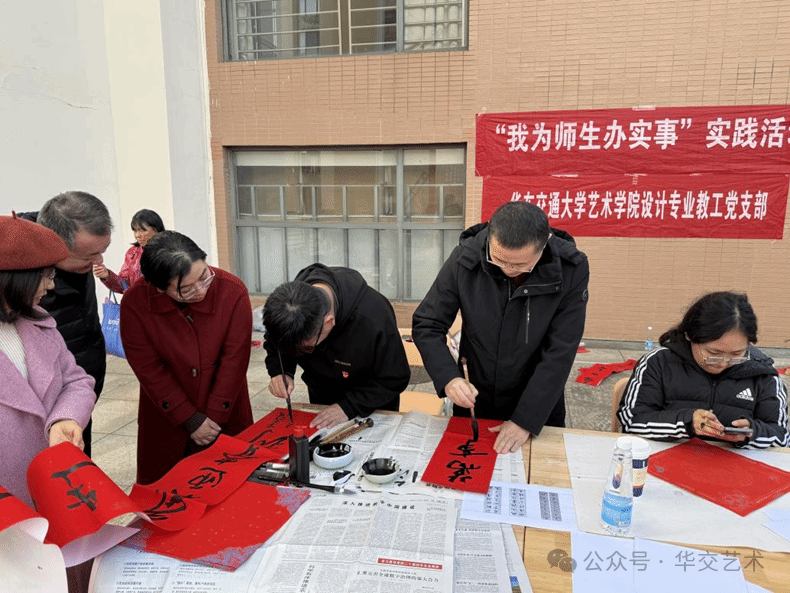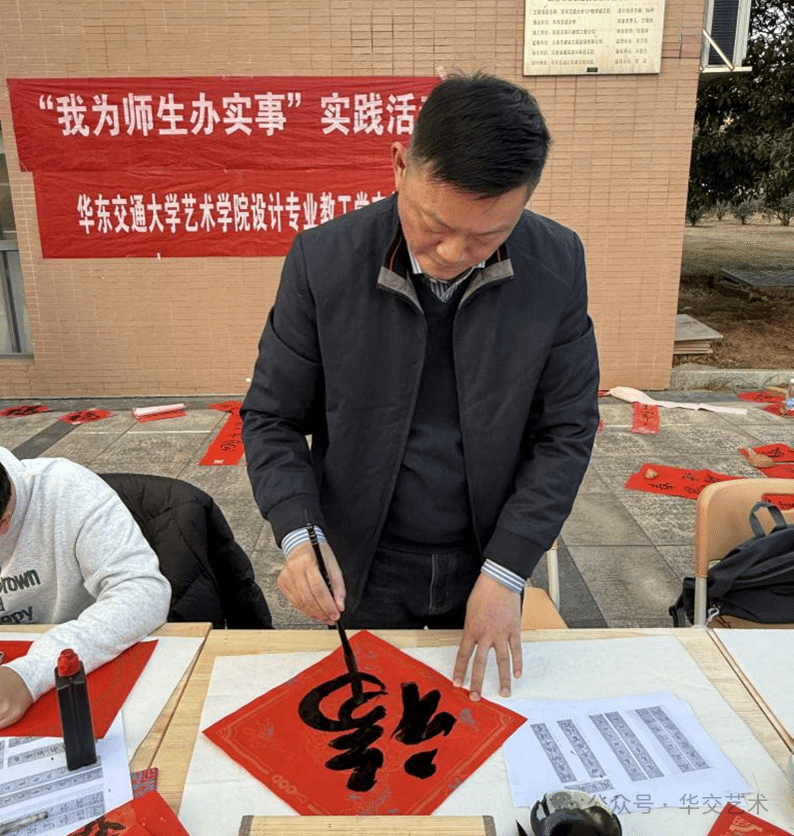 为扎实开展好“我为师生办实事”实践活动,喜迎2026新年,营造欢乐祥和的校园文化氛围,传递新年祝福、弘扬中华优秀传统文化。2025年12月30日下午艺术学院设计专业教工党支部面向全校师生开展新年写福字、送春联书法活动。图书馆馆长石初军、艺术学院党委班子成员、设计专业教师、校险峰书画协会成员等参与此次活动。
