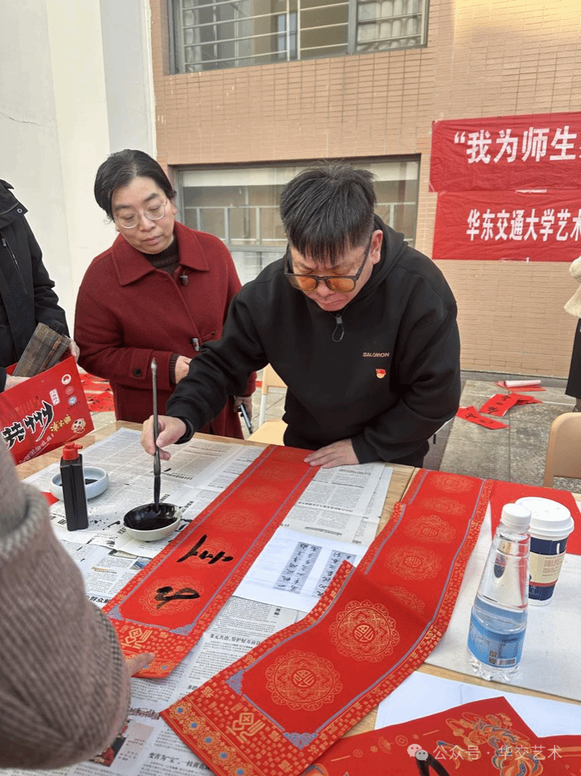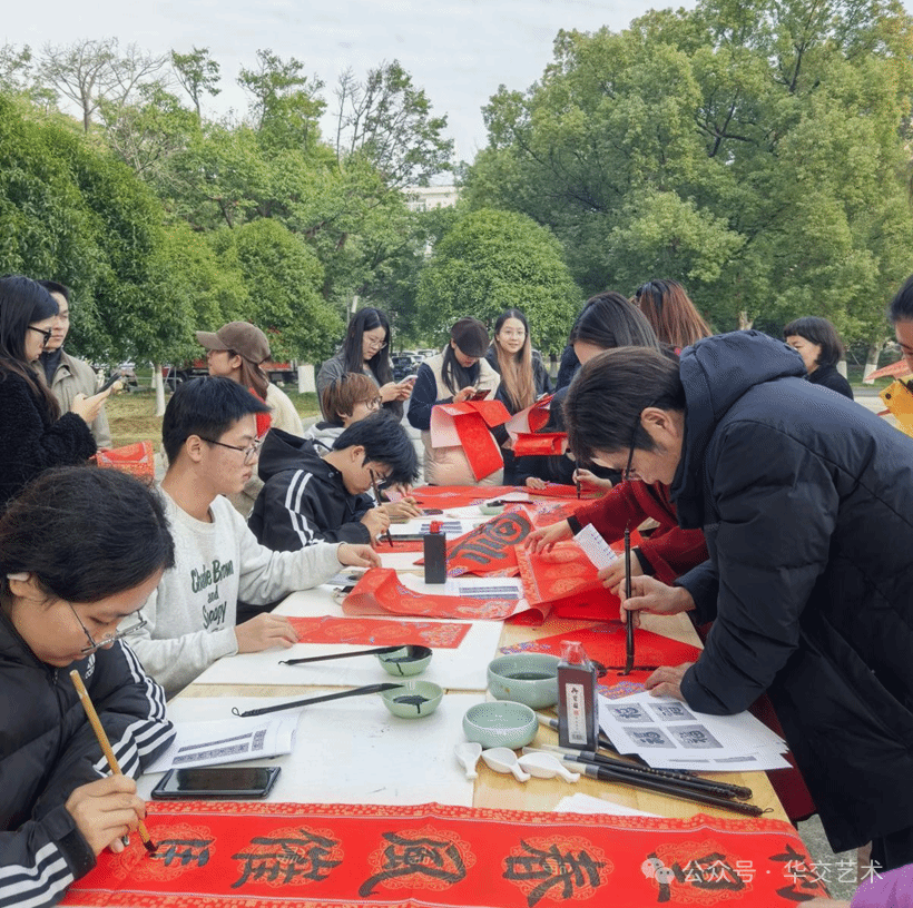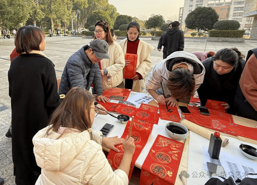 现场不仅吸引了大量老师和学生的关注,还吸引了书法爱好者的参与,大家现场挥毫写春联、画福卡,热闹非凡。现场墨香四溢,师生们以字传情,以书寄愿,共同迎接充满希望和喜悦的新年。