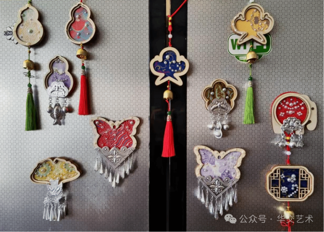 活动现场暖意融融,大家专注选材、精心搭配、细致创作,亲手制作一枚枚独一无二的宋锦风铃、苗银冰箱贴。当指尖在宋锦、绳结、苗银之间穿梭,当创意在色彩与形状中碰撞,一件件别致的冰箱贴、一串串灵动的风铃应运而生,承载着对生活的热爱与对美好的向往。欢声笑语间,尽显女教师们知性优雅、热爱生活的动人风采。