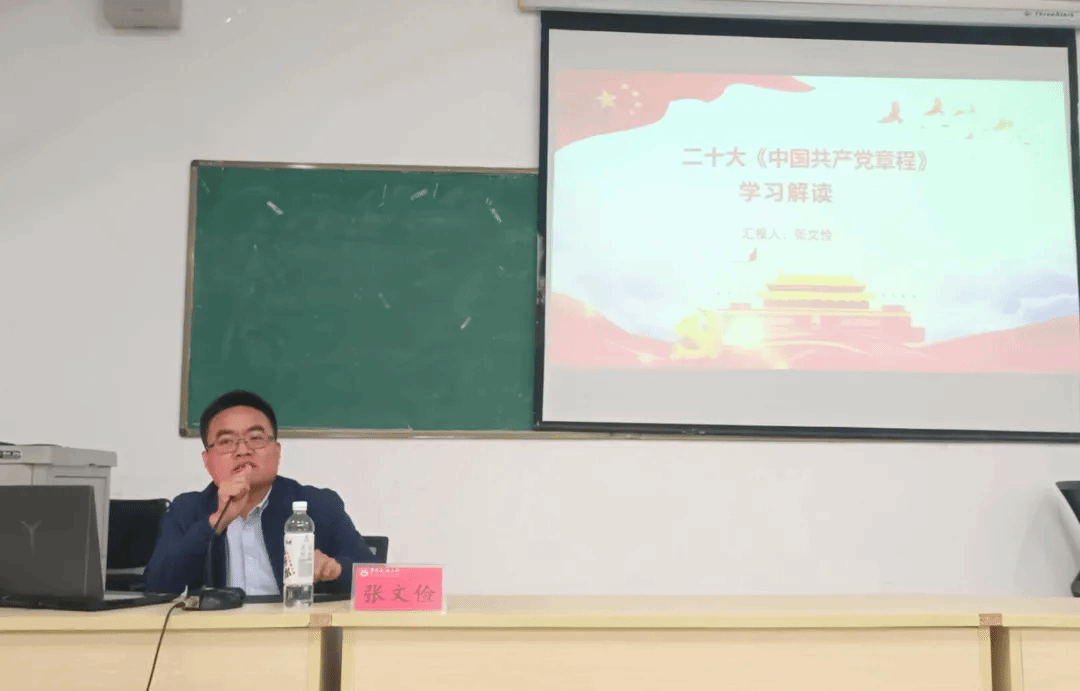 首先,张文俭老师从“党章的地位和作用”“二十大党章修订情况”“二十大党章新修订内容”三个部分进行阐述,对二十大《中国共产党章程》展开了详细解读,使学员们对二十大《中国共产党章程》有了更深的了解。