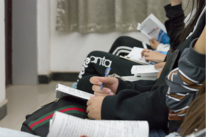 奖学金制度是《学生手册》中的“重头戏”。尚军在介绍我校奖学金的评定措施时提到,我校的奖励制度大于处罚机制,且学生获得奖学金的概率高达29%,鼓励同学们在学习方面积极向上。同学们都仔细聆听讲解,并认真地在《学生手册》上做着笔记。