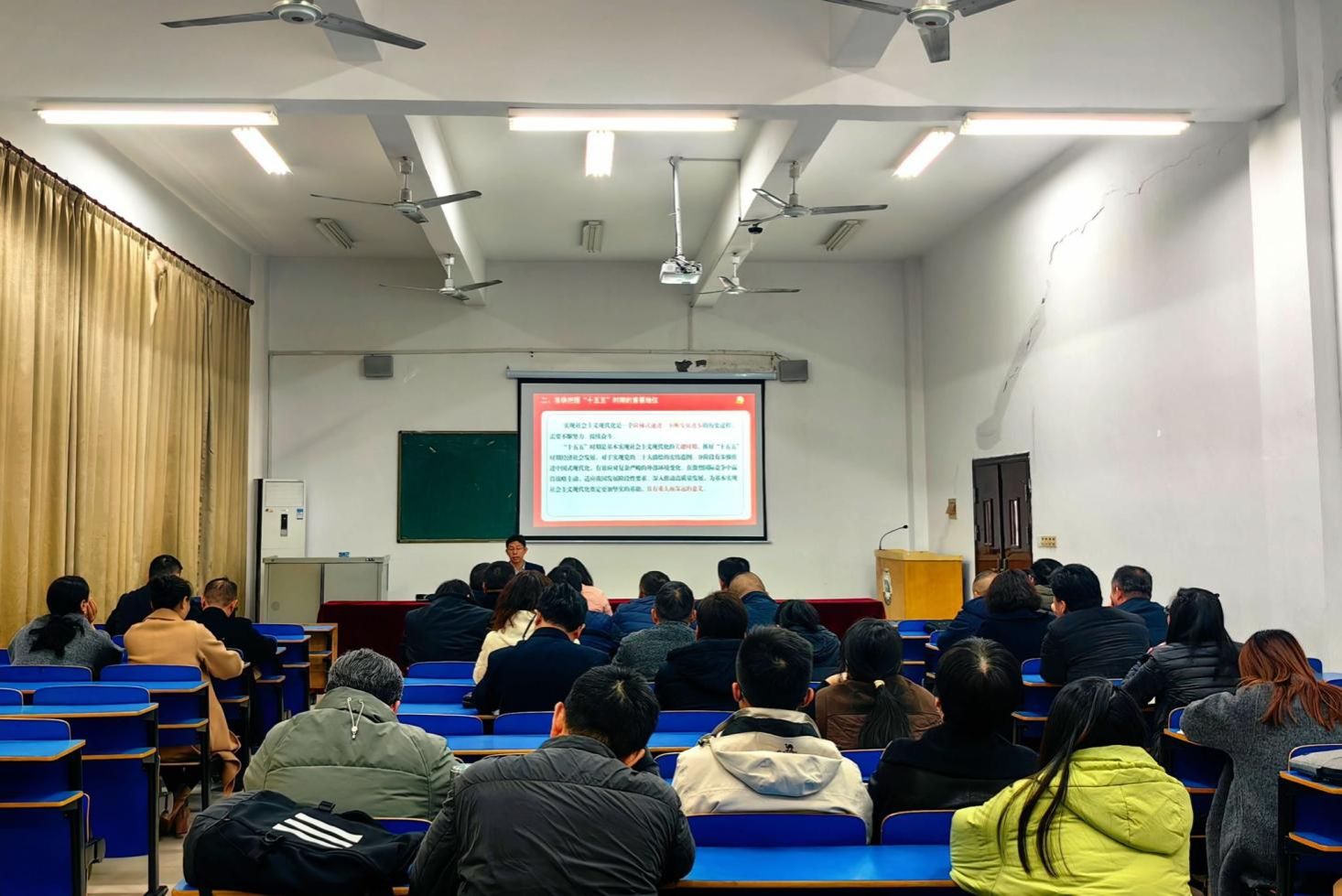 宣讲会上,刘志敏围绕“党的二十届四中全会的重大意义”“‘十五五’时期的重要地位”“推进中国式现代化的根本保证”“谋划学校‘十五五’时期事业发展”四个方面,对党的二十届四中全会精神进行了深入的解读,并结合实际提出了贯彻落实要求。他强调,学院要锚定特色,强化内涵与协同;职能部门要压实责任链条,筑牢安全防线,明确岗位职责,提升风险防控应急处置能力,加强专业化队伍建设,夯实工作基础,加强人员政治素质和业务能力的培训。全体党员干部要更加紧密地团结在以习近平同志为核心的党中央周围,深入学习贯彻全会精神,把进一步全面深化改革的战略落到实处,立足岗位、积极作为,为推动学校高质量发展贡献力量。